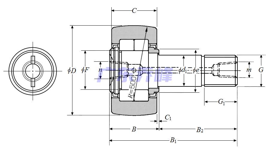 | 凸輪從動(dòng)螺柱式滾輪軸承 - 球面外圈,NUKRT型 - 尺寸 | |