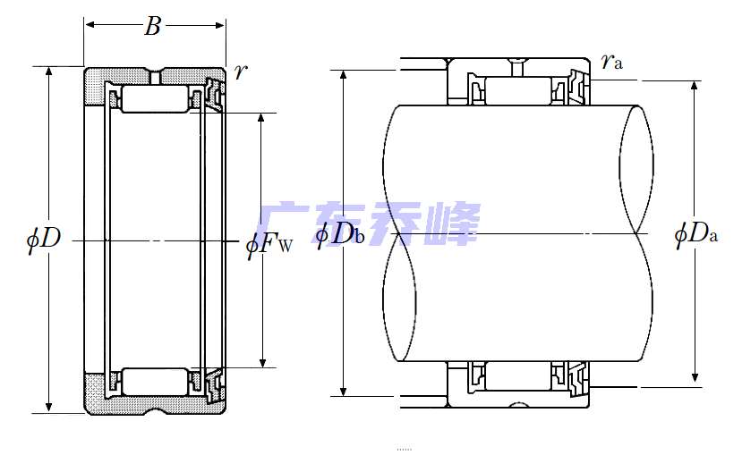 | 機(jī)加工滾針軸承不帶內(nèi)圈 - RNA系列,單面密封 - 尺寸 | |