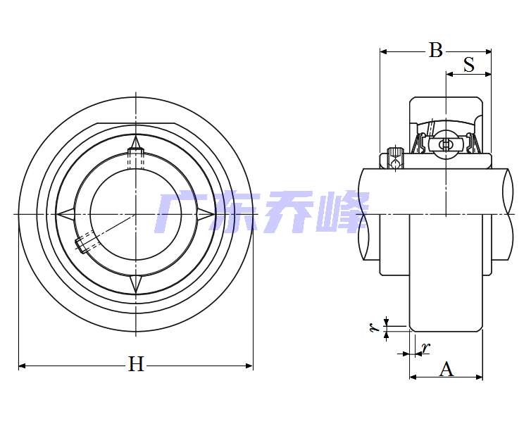 | 環(huán)形軸承座,鑄造外殼,帶緊定螺釘,UCC型 - 尺寸 | |