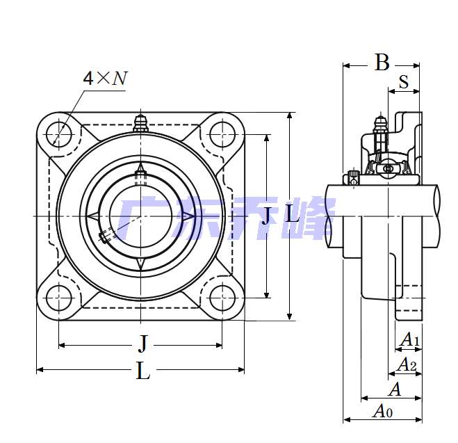 | 類型 | 四螺栓方形法蘭式軸承座 |