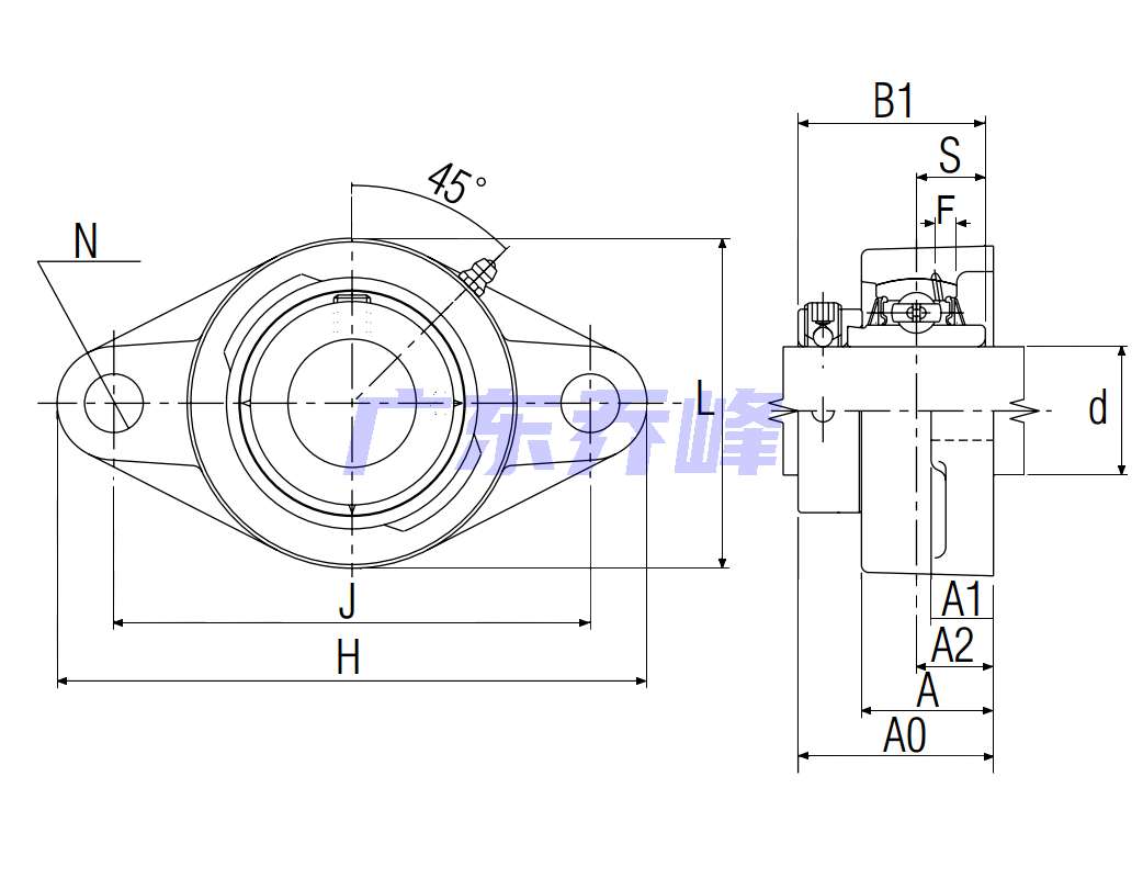 類型 雙螺栓菱形法蘭式軸承座單元