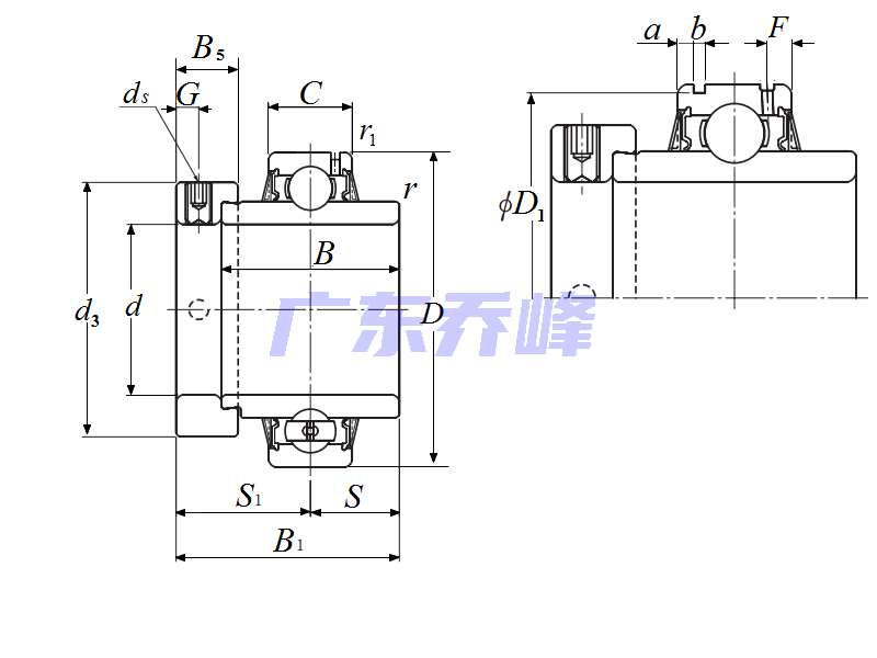 | 帶偏心鎖緊套的外球面軸承,寬外圈 - 圓柱內徑,帶止動環槽 - 尺寸 | |